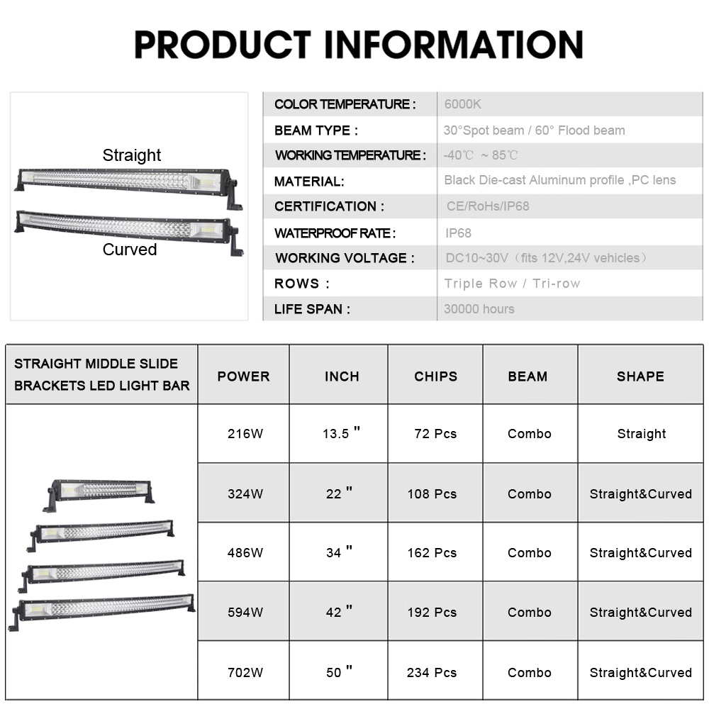 22" 34" 42" 50" Inch 3 Row Led Bar Straight Curved Led Work Light Bar For ATV 4WD SUV Truck 4x4 Offroad Combo Drive Lamp Images |